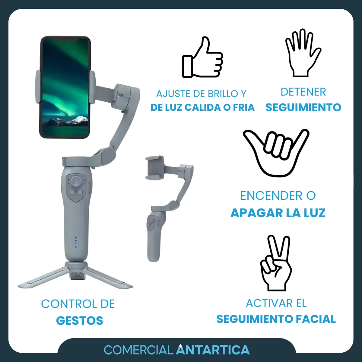 Este Estabilizador es compatible con la mayoría de los smartphones (soporta hasta ~280 g de peso), y cuenta con batería recargable para varias horas de uso. También permite cambiar entre orientación horizontal y vertical, ideal para contenido en redes sociales. El control inteligente vía app ofrece más opciones para personalizar tus tomas y sacar el máximo provecho.